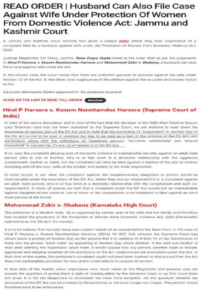 Kusum Narottamdas Harsora and Mohammad Zakir v. Shabana, a husband can also file a case against wife under the Act. In the instant case, the Court noted that there are sufficient grounds to proceed against the wife under Section 12 of the Act.What is mental cruelty in a marriage?