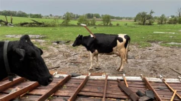 Tornado damage Lifts Cows off Ground