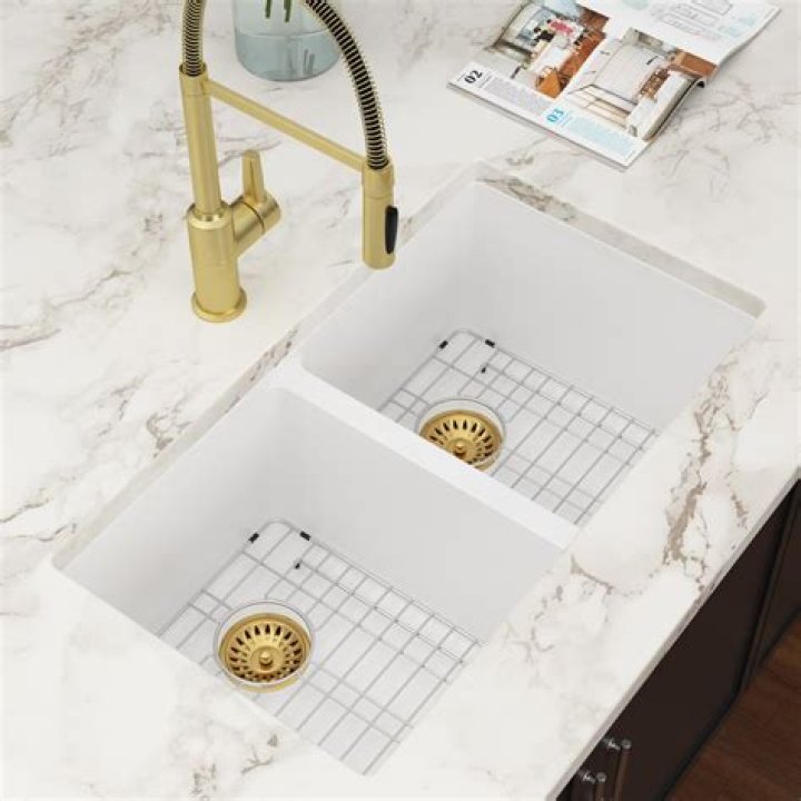 For a monthly deep cleaning of your white sink, mix together a gallon of warm water, a 1⁄4 cup (59 mL) of baking soda and a 1⁄4 cup (59 mL) of ammonia. Soak a non scratch sponge in the mixture and completely scrub your sink's surface down. Rinse well afterwards, so you're not left with a film from the cleaner.Are granite sinks worth it?