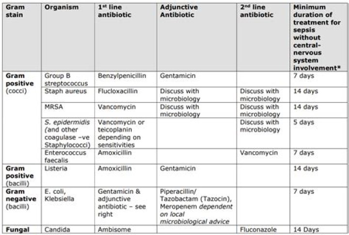 Vancomycin shall only be administered as slow intravenous infusion of at least one hour duration or at a maximum rate of 10 mg/min (whichever is longer) which is sufficiently diluted (at least 100 ml per 500 mg or at least 200 ml per 1000 mg) (see section 4.4).What antibiotics treat sepsis?
