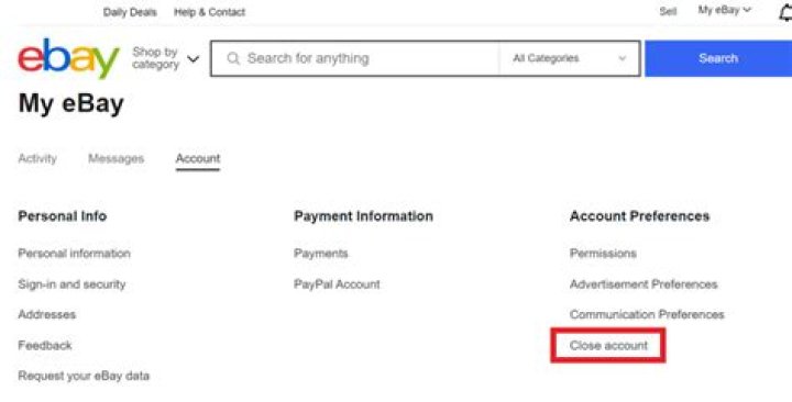 - Go to My eBay > Account > Close my account.