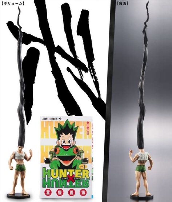 Gon is a young boy with long spiky black green-tipped hair and large, hazel brown eyes.
