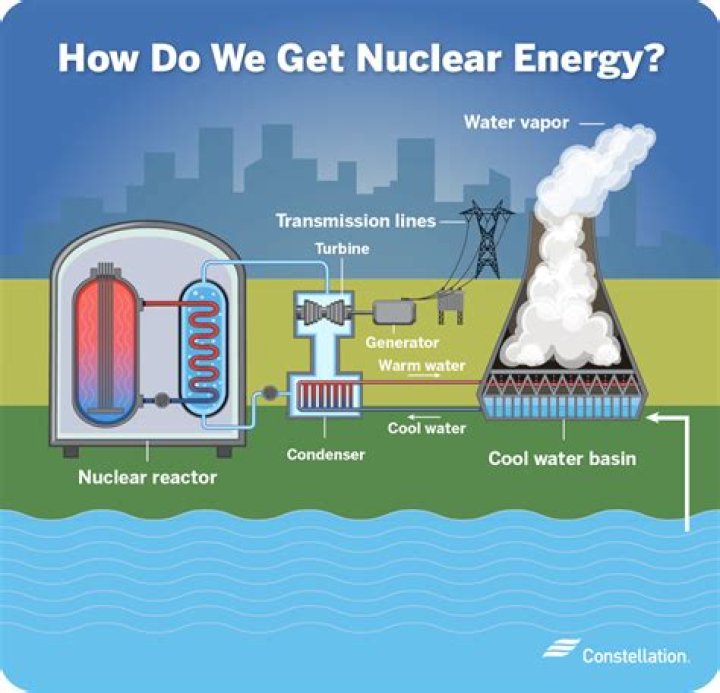 Nuclear is a zero-emission clean energy source. It generates power through fission, which is the process of splitting uranium atoms to produce energy. The heat released by fission is used to create steam that spins a turbine to generate electricity without the harmful byproducts emitted by fossil fuels.