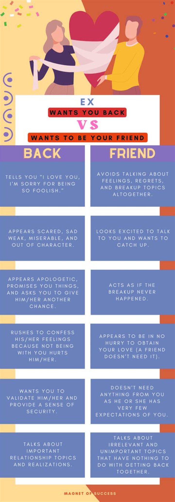 Guilt: If you handled the breakup poorly by trying to talk your ex into getting back together, you likely tried to make them feel guilty about how they hurt you by breaking up with you. If you did that, they might come back to you because they are trying to ease the guilt they feel.How do you know if your ex regrets leaving you?