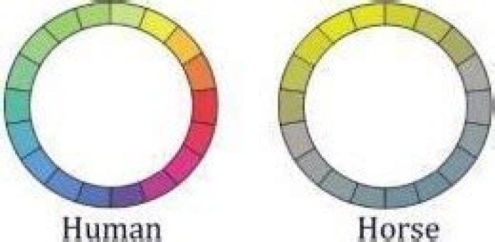 Horses can see green and blue colors within the spectrum, but are unable to distinguish red colors.What do Horses see - biological difference in how they look