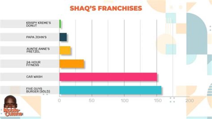 Shaquille O'Neal Owns 155 Five Guys Restaurants, 40 Fitness Centers, And 1 Movie Theater Among Other Businesses. Shaquille O'Neal is one the most dominant players in NBA history, but also one of the smartest.