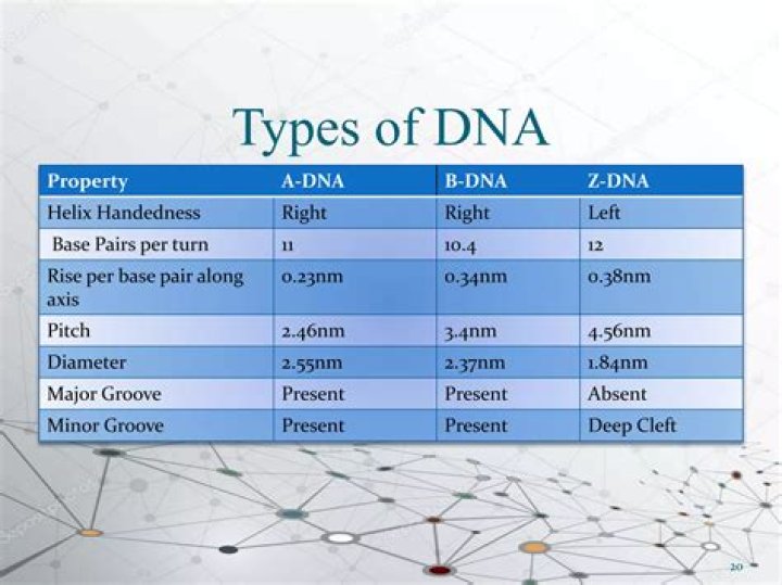 Most of the DNA in our cells takes the form of B-DNA. The familiar B-DNA is also known as right-handed DNA because the DNA strands wind to the right. The B-DNA double helix structure was discovered by Watson and Crick in 1953. Less well-known, however, is a different type of DNA: the left-handed Z-DNA.Difference between A DNA, B DNA And Z DNA
