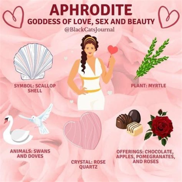 The Charites (minor goddesses of grace and splendor) attended to Aphrodite and served as her handmaidens. Aphrodite's symbols include the dolphin, myrtle, rose, dove, sparrow, swan and pearl, and the dove, sparrow and swan were her sacred animals. The goddess Venus is her Roman equivalent.