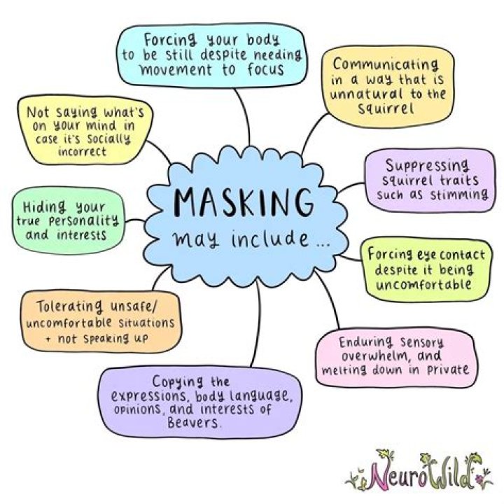 Signs you or someone you support may be masking include: Mirroring others' facial expressions or social behaviors. Rehearsing or preparing scripted responses to comments. Imitating gestures such as handshakes or initiating eye contact.What does masking mean in psychology?
