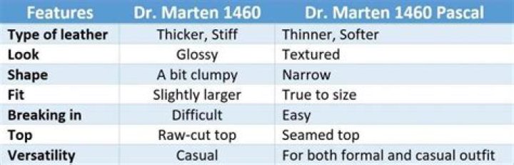The standard features slightly shiny, smooth leather that's very stiff and almost plasticky. The 1460 Pascal replaces that stiff leather with a more textured, thinner, and softer leather. It makes for a slightly sleeker design, a dressier boot, and one that's much easier to break in thanks to its flexibility.What does Pascal mean in boots?