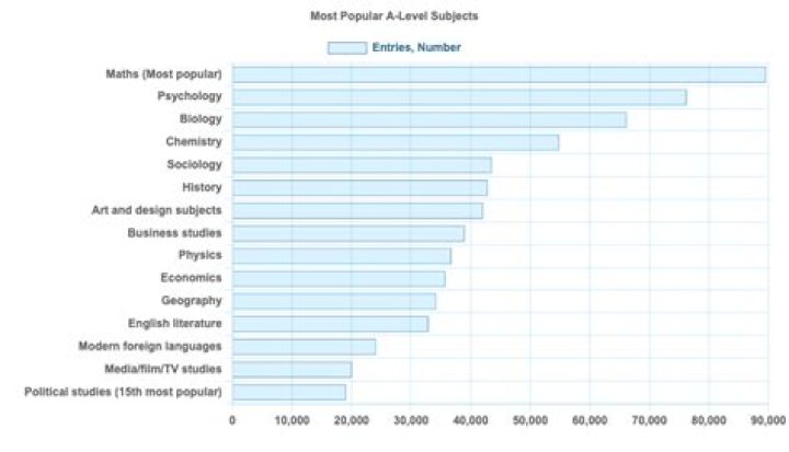 These are the 10 most popular A-levels