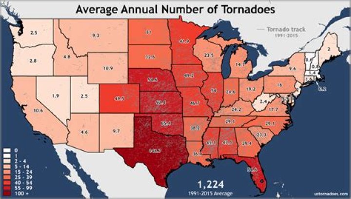 Here are the 10 states with the highest numbers of tornadoes: