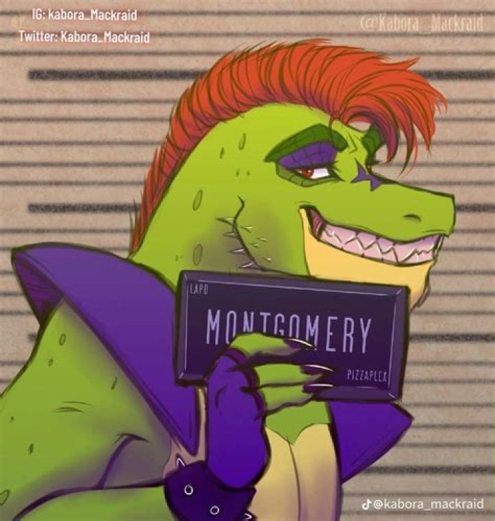 Montgomery Gator is an alligator animatronic. He sports pointy teeth, black claws, a red mohawk, green scale-textured pants, spots on his arms and cheeks, a light yellow color for the belly and lower jaw.Who is MONTGOMERY GATOR? FNAF Security Breach Theory