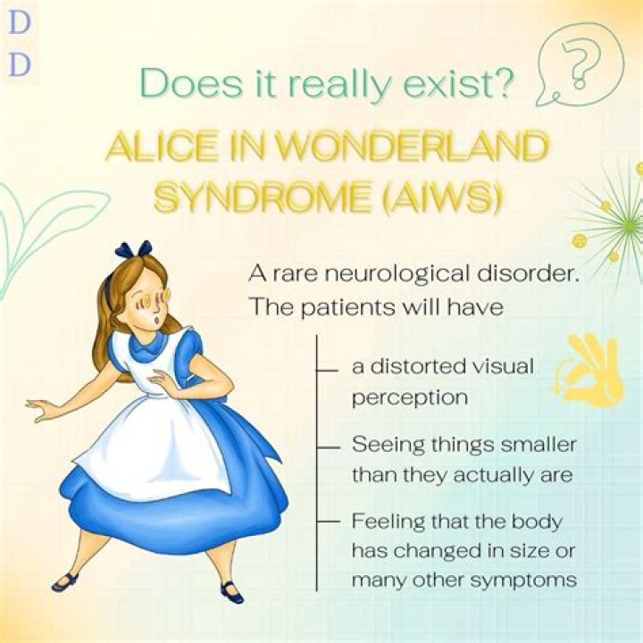 Alice even feels her body shrink (microsomatognosia) or growing unexplainably taller (macrosomatognosia) than she actually is. Such visual perceptual distortions may occur in epileptic seizures, encephalitis, drug intoxication, and may be described in patients with schizophrenia or brain lesions.Is Alice in Wonderland syndrome a mental illness?